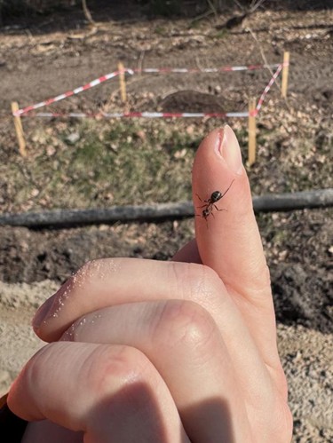 Kleine Tiere, große Vorsicht: Beim Umbetten komme es auf „so viel Feingefühl wie möglich“ an, erklärt Helferin Susanna Jakob. Sie und ihre Kollegen gehen möglichst per Hand und mit kleinen Schaufeln vor, um die Ameisen nicht zu stören. Der Minibagger wird nur genutzt, um einen Graben für die Erkundung des Erdreichs zu schaufeln. So können die Experten herausfinden, wie weit sich das Nest ausgebreitet hat.